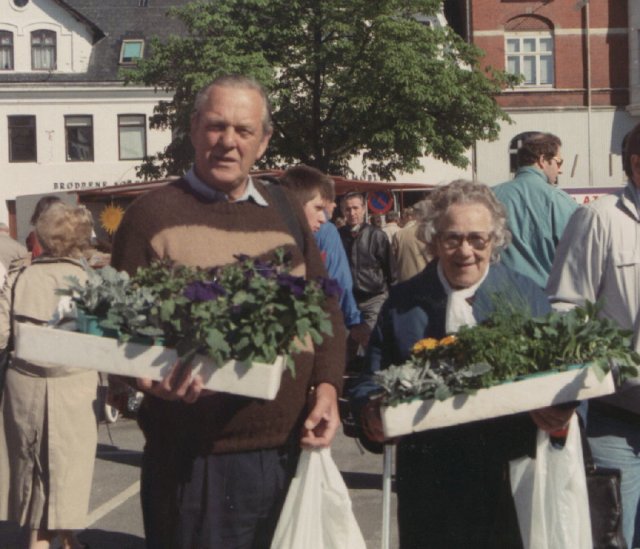 My husband Hans and my mother. We are in a marketplace to buy small flowers to plant at home and on the graveyard in the spring 1991. |